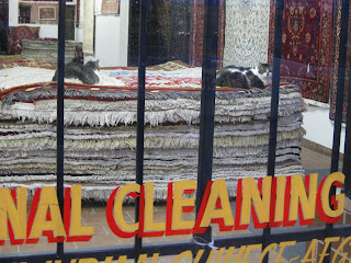 The closest one (the cat) is a print by Canadian printmaker and graphic novelist Laurence Hyde that I found in the basement of my building!! (It was in an old, falling-apart frame.)